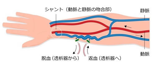 シャントとは、透析に必要な血流を確保するために